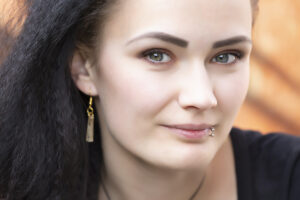 Portrait Of A Beautiful Young Woman With A Lip Piercing